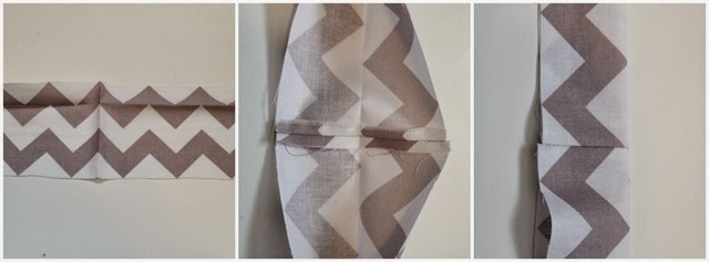 Iron your 4 strap pieces flat and sew all four pieces together, end to end, with right sides together, using a 1/4" seam allowance. Iron open each seam, and fold your now very long piece in half-lengthwise, wrong sides together. Iron on fold.